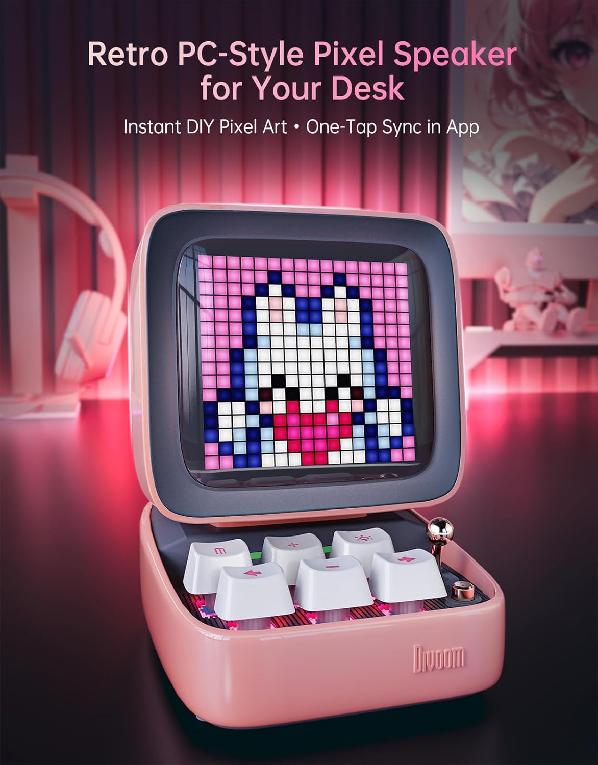 Divoom Ditoo Retro Pixel Art Game Bluetooth Speaker with 16X16 LED App Controlled Front Screen (Pink)