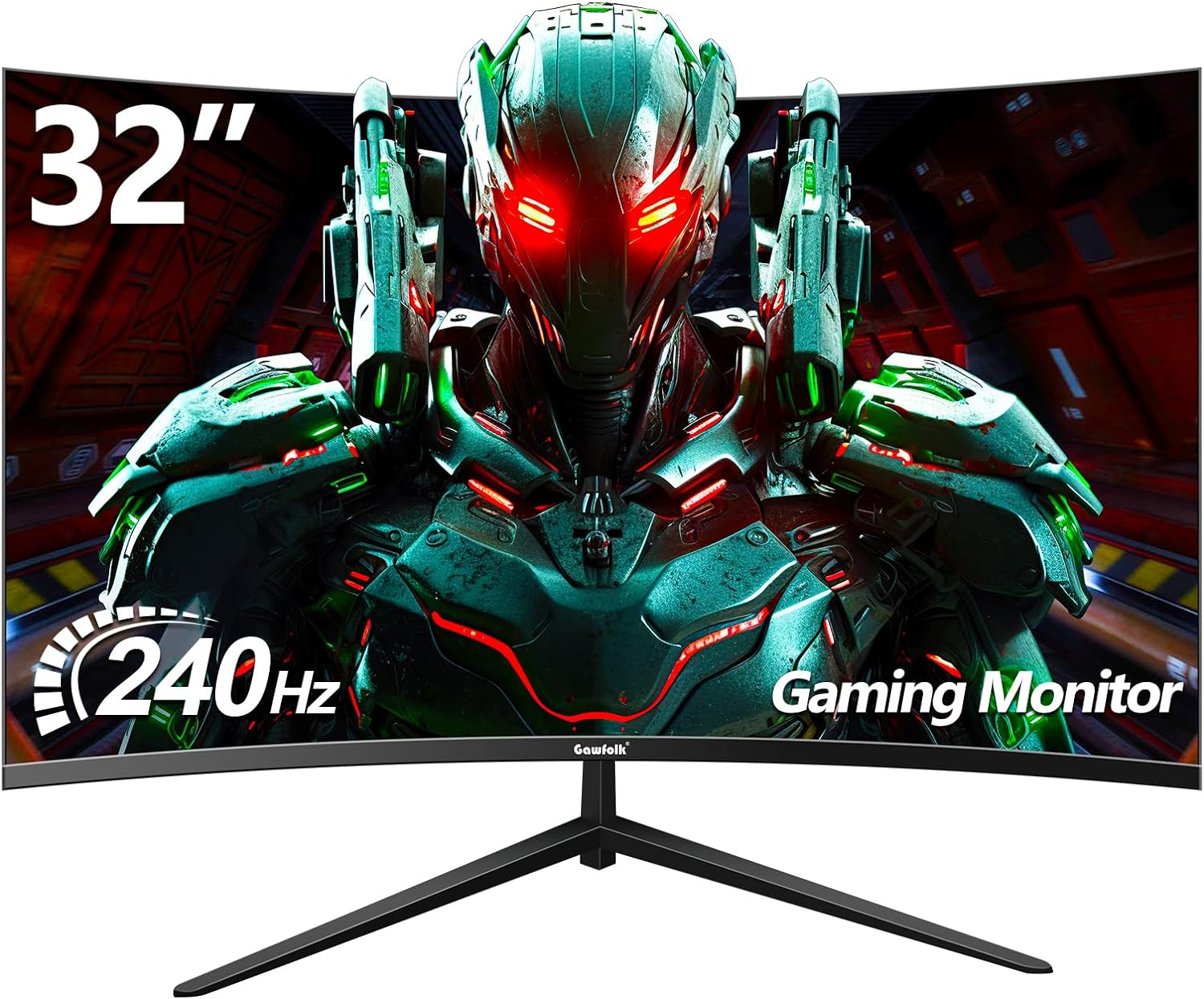 Gawfolk 32 Inch Curved Gaming Monitor 240Hz, 1800R PC Monitor Full HD 1080P, Frameless Computer Dispaly with Freesync and Eye Care Technology, Wall Mountable